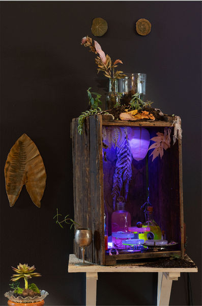 Dirt Battery blends science and magic, performance and play and uses a variety of media- sculpture, textiles, costume, animatronics, video- to explore these both futuristic and very ancient encounters. The work proposes, that through understanding and strengthening our perception of the earths fields we could coregulate with the earth and humanity.These interactions between people, place and invisible forces, and ostensibly, new ways to manage forms of energy and power is also suggested.